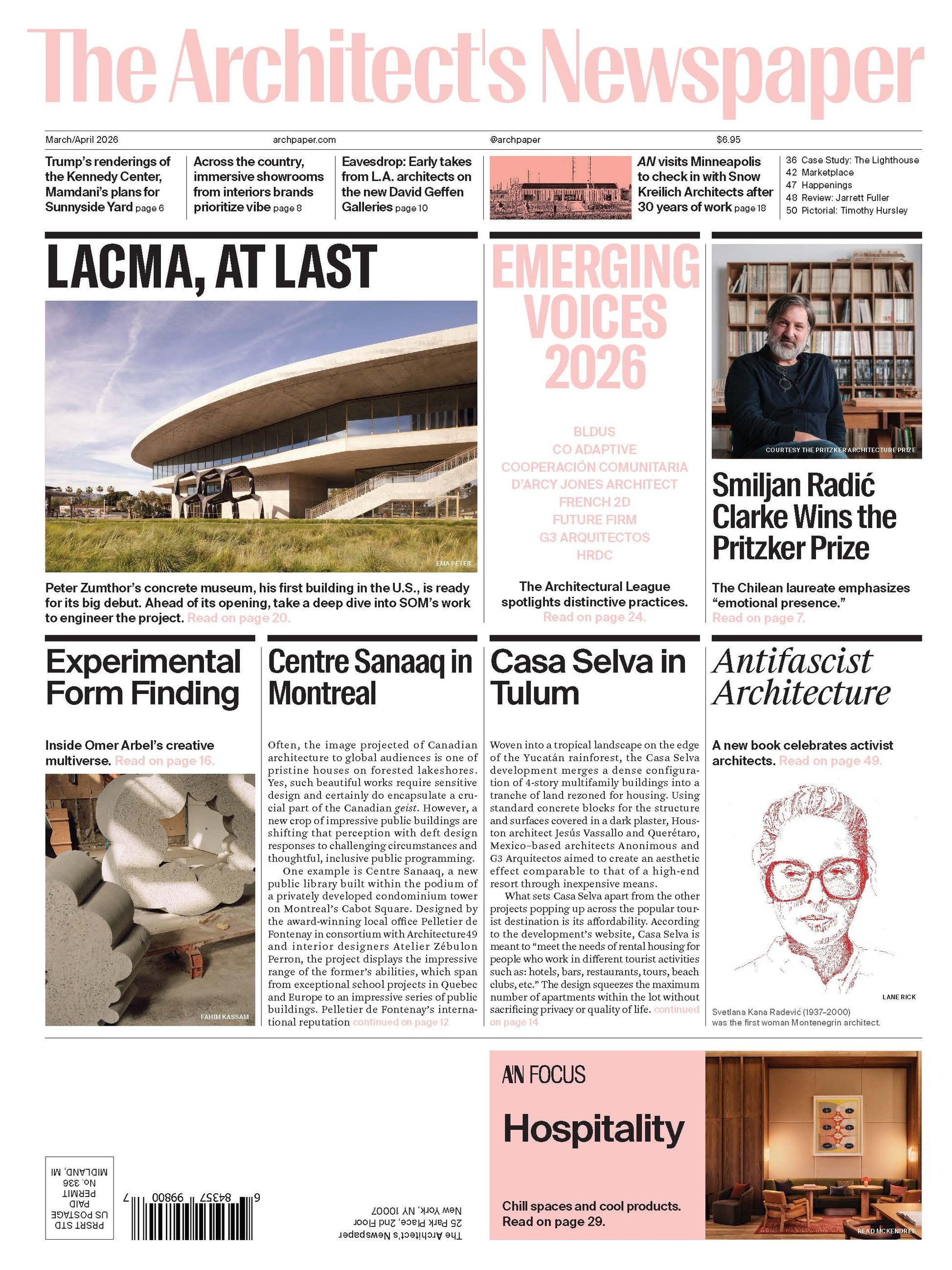 AN’s March/April issue offers a deep dive into LACMA’s David Geffen Galleries designed by Peter Zumthor with SOM ahead of its opening. We also celebrate the eight Emerging Voices 2026 winners from The Architectural League. In our Hospitality focus section, we highlight the trend of multipurpose spaces and recommend a range of new products. Plus don't miss other news and reviews.
